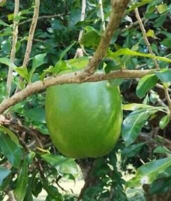 Su nombre científico es “Crescentia cujete”. Miembro de la familia de plantas llamada Bignoniaceae. Su fruto puede llegar a pesar hasta 30 centímetros de diámetro.